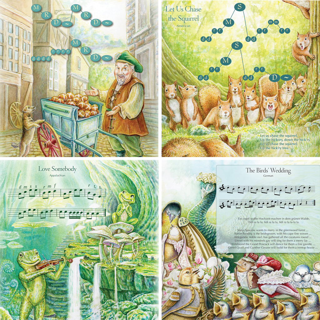 Stunning watercolor illustrations of beloved folk songs bring learning to life, spark the imagination, and inspire a love for music. Movable-do solfege encourages supports by-ear learning and illuminates tonal relationships. Gentle, accessible steps ensure a smooth journey for even the youngest players. 42 pages.