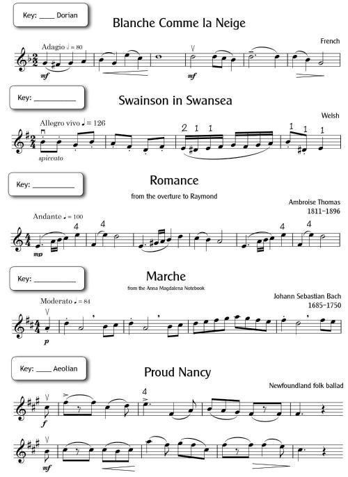 • The beautifully tragic Blanche Comme la Neige (French traditional), which is in mixed meter, encourages transparent flautando bowing.